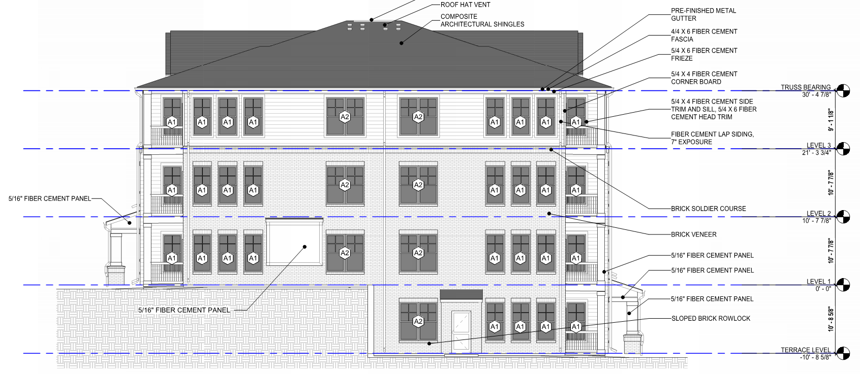 South & 20 is a multi-family complex located in Cartersville, GA. It contains 288 unit with 7 types of units and 3 adapted to be accessible. Three buildings are 3-story, and two other buildings are 3/4-stories splits. This is a type 5A constructions for the apartment buildings and 5B for the amenities.
